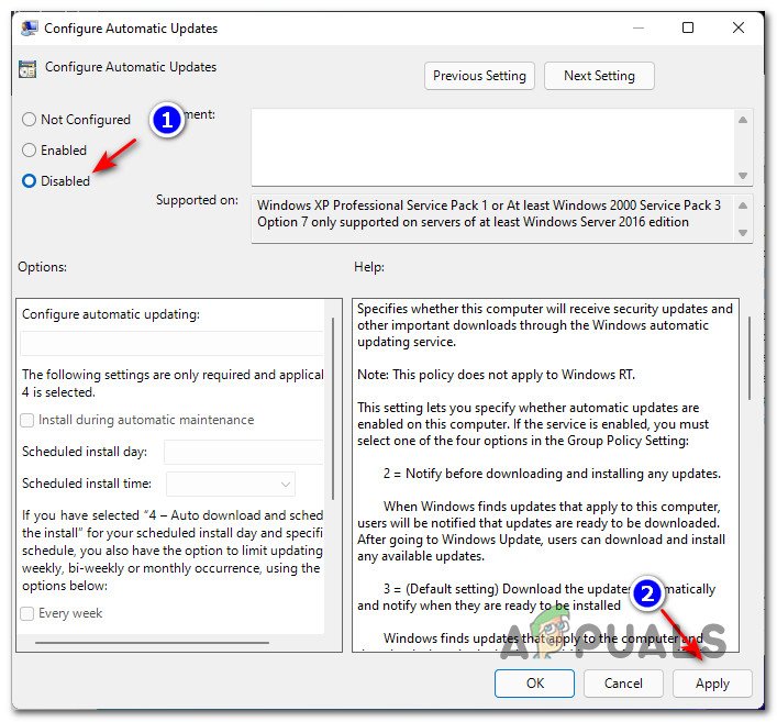 disabling automatic updates