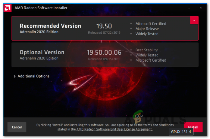 installing the recommended drivers from AMD