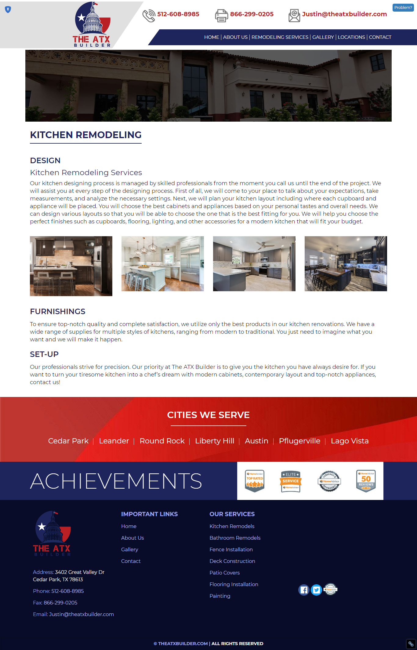 The ATX Builder is a full-service home remodeling company in Cedar Park, TX. Our team specializes in a variety of remodeling services and aim to suit our clients’ needs from start to finish. Our clients’ homes deserves to look its best! From its kitchens to its floors or fences, our team ensures that our clients’ living spaces are to our clients fancy. Our team knows the stress that can accompany home remodeling services and we go above and beyond to make our clients comfortable throughout the process. Call us today to get the home remodeling service you deserve.