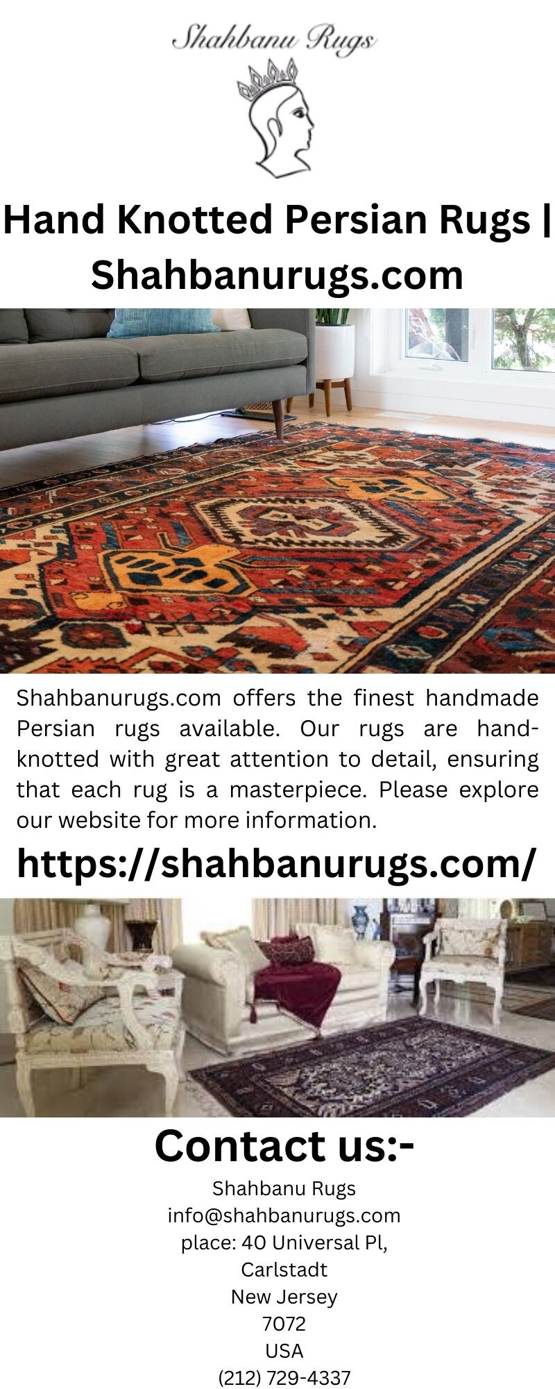 Shahbanurugs.com offers the finest handmade Persian rugs available. Our rugs are hand-knotted with great attention to detail, ensuring that each rug is a masterpiece. Please explore our website for more information.